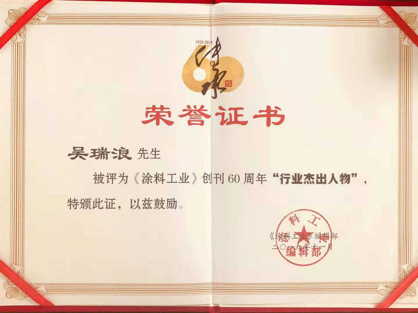 吳瑞浪先生榮獲“行業杰出人物”光榮稱號