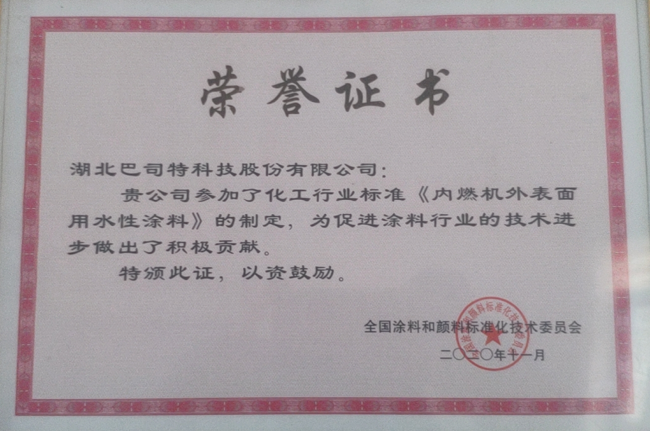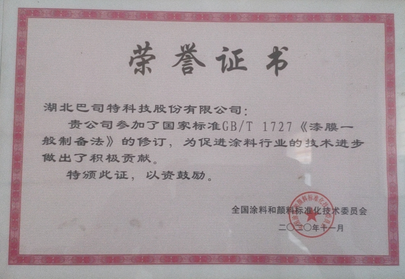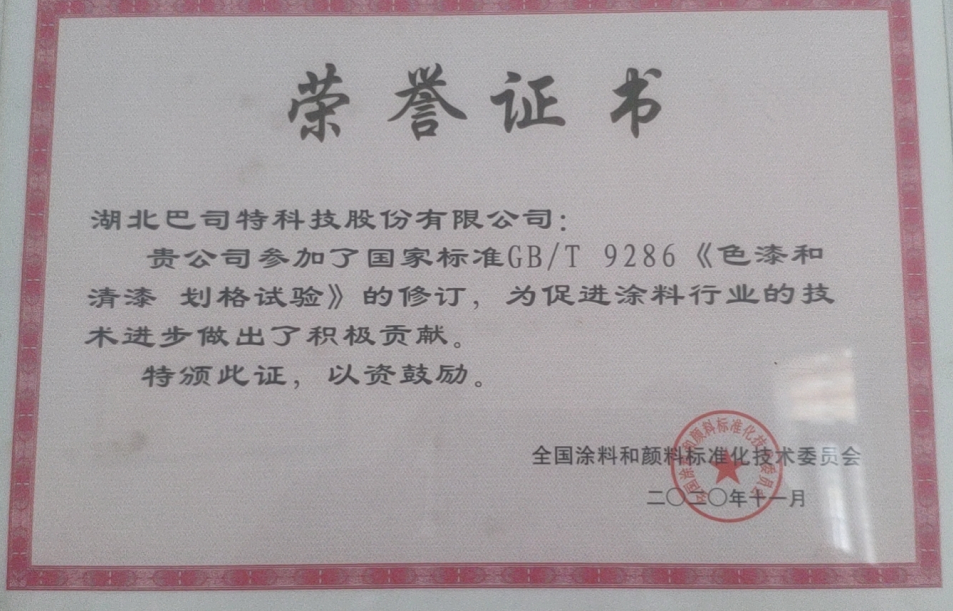 如今,巴司特科技作為標(biāo)準(zhǔn)主要起草人,正在修制定GB/T 6739《色漆和清漆 鉛筆法測(cè)定漆膜硬度》、HG/T4346《涂料用氯化橡膠樹脂》、HG/T《透水道路用涂料》等相關(guān)工作。在未來(lái),巴司特科技將承擔(dān)越來(lái)越多的國(guó)家標(biāo)準(zhǔn)、行業(yè)標(biāo)準(zhǔn)的制定和修訂任務(wù),全面實(shí)施質(zhì)量強(qiáng)企和標(biāo)準(zhǔn)化戰(zhàn)略,進(jìn)一步提升了品牌影響力。
