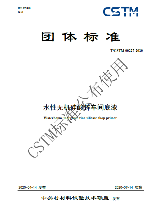 2.T/CSTM 00227-2020《水性無(wú)機(jī)硅酸鋅車間底漆》團(tuán)體標(biāo)準(zhǔn),已于2020年4月14日經(jīng)中關(guān)村材料試驗(yàn)技術(shù)聯(lián)盟發(fā)布,于2020年7月14日實(shí)施,巴司特科技作為主要起草單位參與該標(biāo)準(zhǔn)制定。