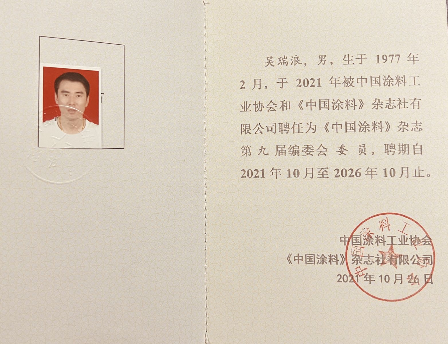會中,湖北巴司特科技股份有限公司總經理吳瑞浪被中國涂料工業協會和《中國涂料》雜志聘為第九屆編委會委員。同時被《中國涂料》評為2020—2022年度最佳合作伙伴。